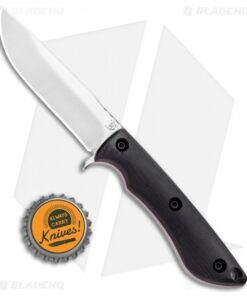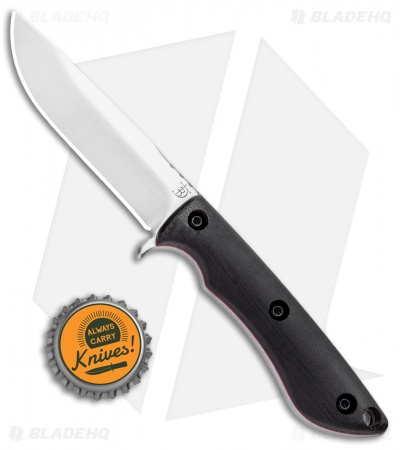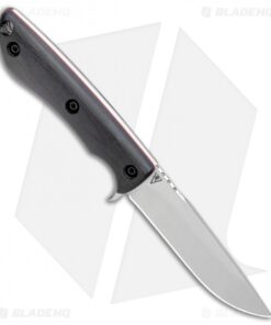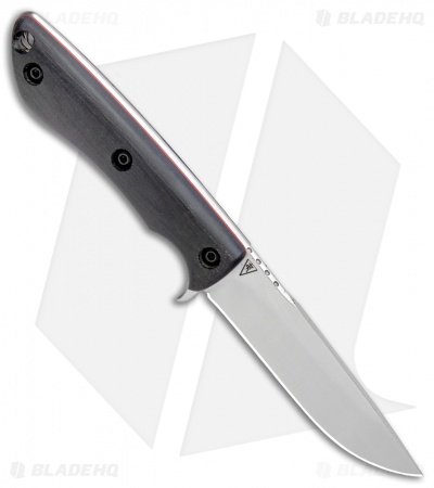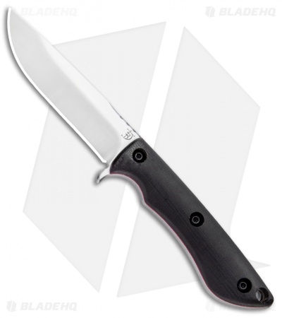 This Tavi from Dark Timber is outfitted with a black micarta handle with red liners. Its blade sports a satin finish.