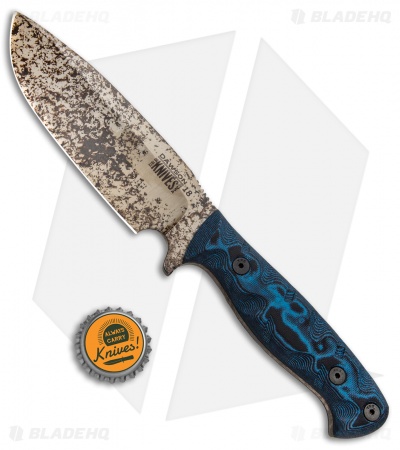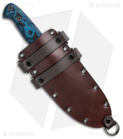 The Dawson Knives Big Bear is a large knife that is capable of filling multiple roles, from camping to hunting activities. It features a Hellcat Gold Cerakote blade made from super tough 80CrV2 with a hollow grind. The handle scales are made from black and blue G-10 with textured grooves for excellent grip in any scenario. It comes with a unique hybrid sheath made from kydex and leather.