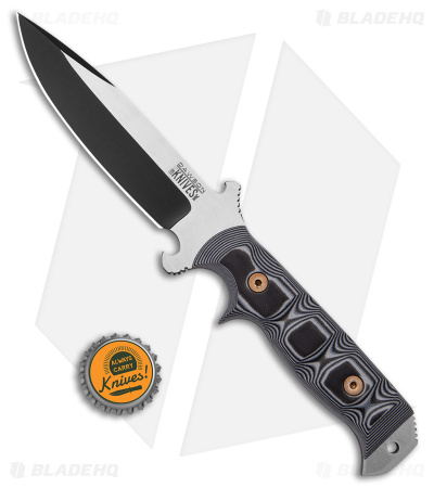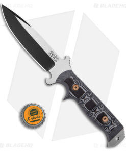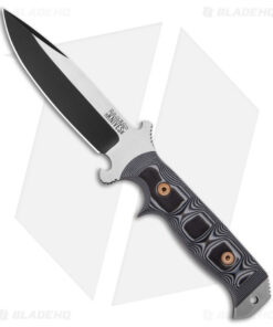 The Chief from Dawson Knives is useful for all kinds of outdoor, hunting, and survival tasks. The handle is sized perfectly for a quality grip with finger grooves for added security when chopping or piercing. The blade is heat treated and performs without sacrificing durability and strength. The crossguard at the base of the blade has what appears to be a bottle opener so you can hydrate while out in the woods working hard.
