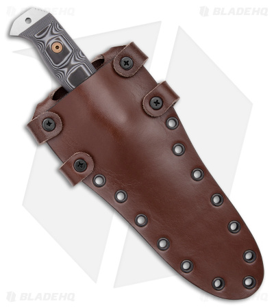 - Leather/Kydex sheath for vertical belt carry and a lanyard hole.
