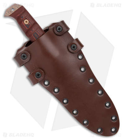 - Leather/Kydex sheath for vertical belt carry and a lanyard hole.