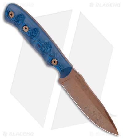 - AZ copper finished drop point blade made of CPM MagnaCut steel.