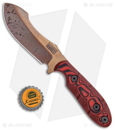 The Dawson Knives Javalina is a handy hunting knife that makes easy work of game, big or small. The harpoon blade shape has a little gimping near the tip that gives you good grip when you choke up. The deep belly makes skinning and meat processing a breeze. The knife includes a leather/kydex sheath.