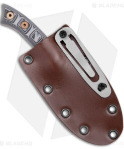 - Leather/kydex sheath for vertical belt carry.