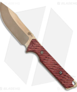 - Bronzed, satin-finished modified clip point blade made from AUS-8 steel.