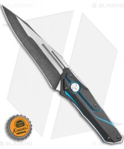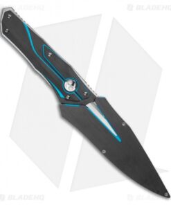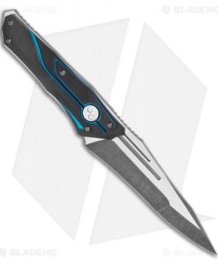 The HOMURA fixed blade is the creation of Dew Hara, son of the widely known and highly regarded knifemaker Koji Hara. This HOMURA fixed blade is wildly eye-catching and a piece of art. It features a black Duralumin handle with blue accents. The blade is beautifully shaped out of OU-31 steel with an acid wash finish. The design has strategically placed jimping on the spine of the blade and underside of the handle. It comes with a matching sheath.