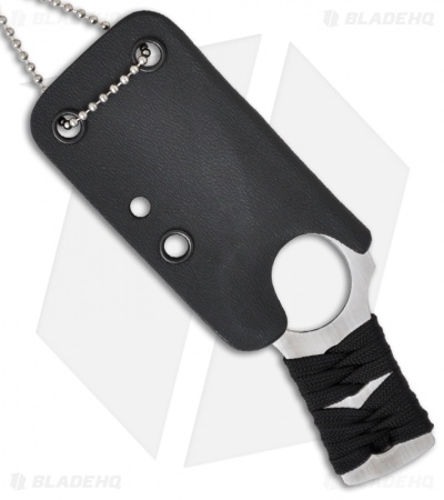 Dirk Pinkerton’s Variable BroadHead is a small, lightweight self-defense neck knife. The handle is cord wrapped (gutted) and features a finger ring for multiple grip options. The 154CM stainless steel blade is double edged with a v-grind. The included Kydex sheath has a chain for neck carry. The Variable BroadHead is a great knife design from Dirk Pinkerton that is adaptable to a wide range of user preferences.