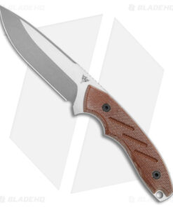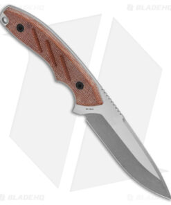 - Natural canvas micarta handle with a finger choil.