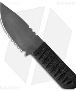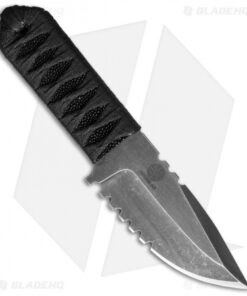 The Mocket Rocket is a an Asian-style tactical knife with a cord wrapped stingray skin handle and chisel ground, swedged drop point blade. It has partial serrations along with a dark acid wash finish. Includes a fitted sheath and Blade-Tech belt attachment.