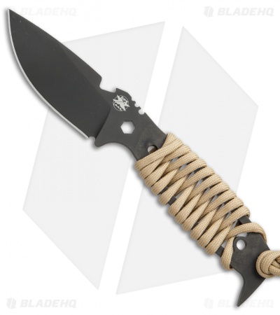 The Assault Version of the DPx Hest II is bound to be a big hit with LEO and military personnel. It has a full-tang blade made from 0.187″ thick Niolox steel with a gray TiCN PVD coat. The skeletonized handle has an angle pry bar pommel and a desert tan paracord wrapping. Item comes with a Cordura nylon sheath.