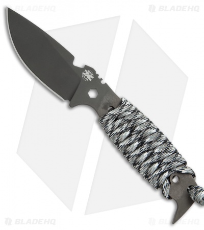 The Assault Version of the DPx Hest II is bound to be a big hit with LEO and military personnel. It has a full-tang blade made from 0.187″ thick Niolox steel with a gray TiCN PVD coat. The skeletonized handle has an angle pry bar pommel and an urban camo paracord wrapping. Item comes with a Cordura nylon sheath.