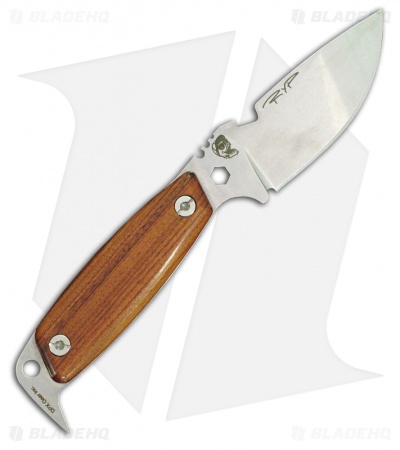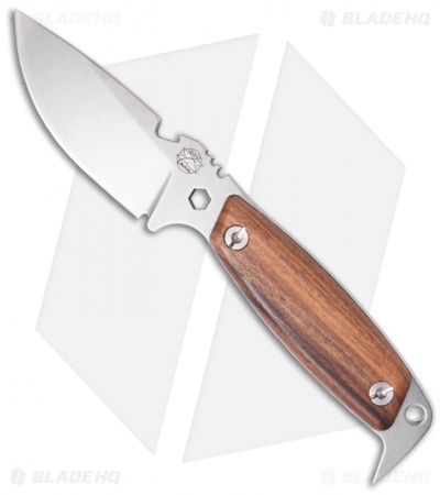 The Woodsman Version of the DPx Hest II is a proven hunting and expedition tool. The full-tang blade is 0.187″ thick Sleipner tool steel with a hard tumble finish. The handle is hollow and features Santos hardwood scales and a new angle pry bar. Comes with a premium Italian leather sheath.