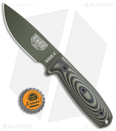ESEE Knives ESEE-3 Fixed Blade Knife OD Green/Black G-10 (3.9″ OD Green)