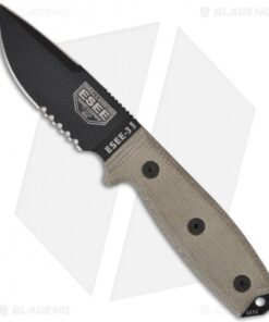 ESEE Knives ESEE-3MIL-S-CP Clip Point Knife Green Sheath & MOLLE (3.88″ Serr)