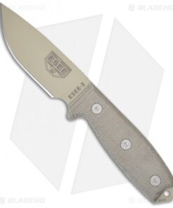 ESEE Knives ESEE-3P-MB-DT Knife w/ MOLLE Back (3.88″ Tan Plain)