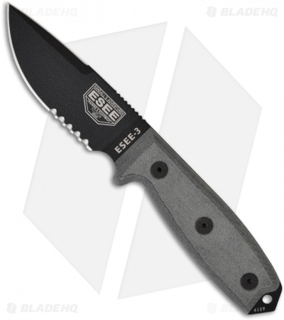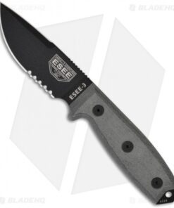 ESEE Knives ESEE-3S-CP Clip Point Knife Coyote Sheath (3.88″ Black Serr)
