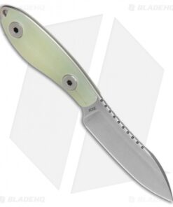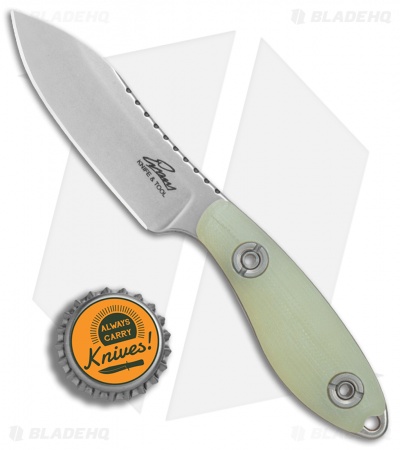 This Companion fixed blade is outfitted with a Jade G-10 handle and a stonewashed blade. The Companion from Evans Knife and Tool offers a compact neck knife design, built tough to serve any EDC cutting need. It’s made 100% in the USA and the quality is evident from the moment you get the knife in hand. Curved lines and a rounded handle provide a unique look and a supremely comfortable grip. Custom rivets and an extended tang lanyard hole finish off the impressive design.
