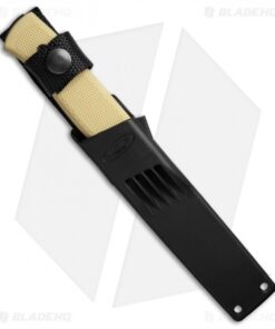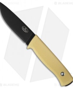 This Fallkniven F1 knife has a Lam.CoS (laminate cobalt steel) blade with a convex grind and a black Cerakote finish. The diamond textured, sand colored Thermorun handle provides an ideal platform for safe and comfortable use whether wet or dry. The tang protrudes at the pommel slightly (less than 1/16″). This Fallkniven F1 comes with a tough double-safety, one hand operated zytel sheath with belt loop.