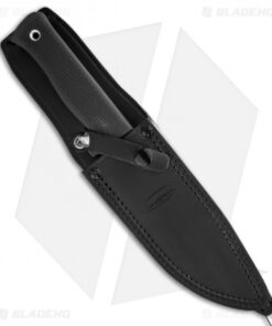 This A1 knife has a stainless steel laminated VG-10 clip point blade with a black finish. The blade is convex ground for extra strong cutting and penetrating power. The Kraton handle is textured and provides a great grip in all conditions. The tang protrudes at the base slightly (less than 1/16″). This Fallkniven A1 knife comes with a premium leather sheath with belt loop.
