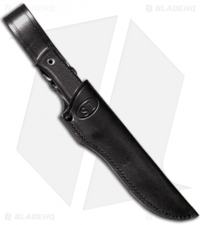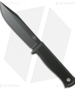 Fallkniven’s S1, The Forest Knife, has a sturdy blade made from a stainless laminated VG-10 custom steel. The black CeraCoat finished clip-point blade is convex ground for extra strong cutting and penetrating power. The checkered Thermorun handle provides good grip even when your hands are cold or wet. Tang protrudes at base slightly (less than 1/16″). This Fallkniven S1 knife comes with a tough open-top dangler leather sheath with belt loop.