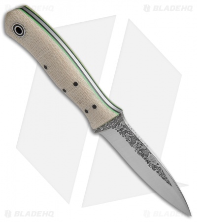 This ASP knife has Oatmeal Burlap scales with black G-10 liners and lime green pinstripes. It features a convex ground A2 steel spear point blade with a satin finish. Fiddleback Forge fixed blades are a real treat for those looking to acquire a premium handmade knife with an emphasis on comfort in hand, efficient blade dynamics, and a traditional style.
