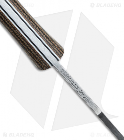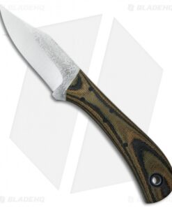 The Lonestar EDC fixed blade has a signature Fiddleback design and finish. Handle scales are beautifully contoured and flared to provide an exceptional user experience. The blade is 1/8″ thick O1 steel with solid full-tang construction. This model has polished OD camo Micarta scales, white pinstripes and black liners. Sheath not included.