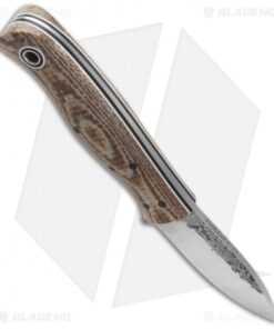 The Tobaggan from Fiddleback Forge offers extreme comfort in hand and an upswept drop point blade for a wide range of chores and fine cutting tasks. This model features a rattlesnake burlap Micarta handle with black liners and a white pinstripe. The tapered full tang A2 steel blade is 5/32″ thick. Sheath not included.