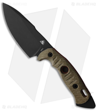 - Olive drab green with orange trim micarta handle, large lanyard hole.