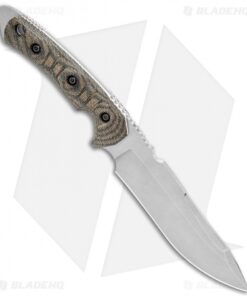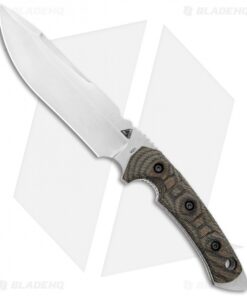 - Stonewashed, CPM-3V blade with a convex grind in a drop point blade shape is tough and holds it’s edge.