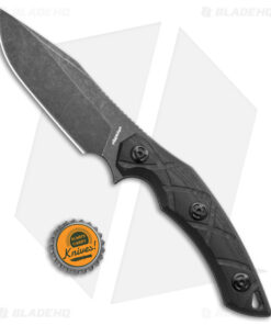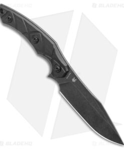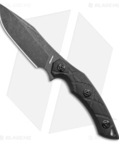 - Black stonewashed drop point blade made from 8Cr13MoV steel.