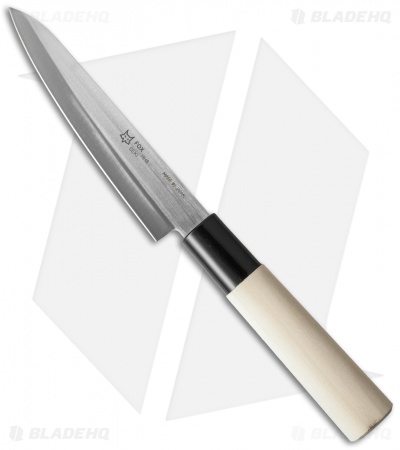This paring knife from Fox Knives is a lightweight fixed blade that is ideal for use around the kitchen. It has a thin, paring blade that is typically used for cutting fruits and vegetables. The handle is made from naturally finished maple wood with black composition trim. It features Japanese made quality that looks as good as it functions. Take your cooking to the next level with a Japanese kitchen knife from Fox Knives.