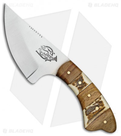 An attractive and inexpensive option for your next hunting trip. The Fox-N-Hound skinner features a 3.125″ stainless steel fixed blade with plenty of belly for processing your next trophy. Stacked wood and stag scales make a unique and functional handle. Easily carried into the backcountry with the included brown leather belt sheath.