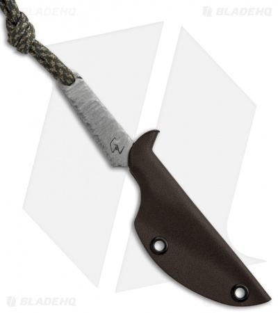 This Gavidashi neck knife has a right hand chisel grind and Gavko’s bark texture on the rest of the blade and handle. Includes a Kydex sheath along with neck cord, carabiner, and bead. This is #5.