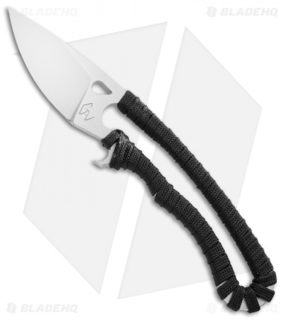The Shark is a compact everyday carry neck knife. It is outfitted with a 2 inch drop point blade, cord wrapped handle and a bottle opener for good measure. The blade is sand blasted and stonewashed for a matte gray finish. Includes molded sheath.