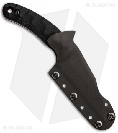 This Wharnie knife has sculpted black Micarta scales with red accent liners. Sand blasted and stonewashed blade for a matte gray finish. Includes Kydex sheath, neck cord, and bead.