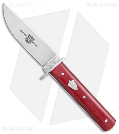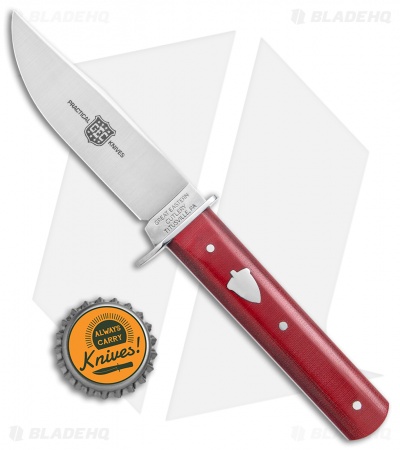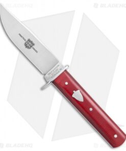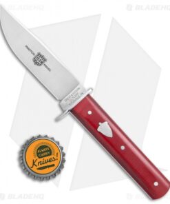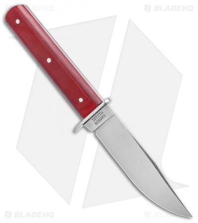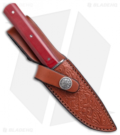 - Pinned red linen micarta handle scales.