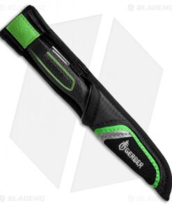 The Freescape Camp Paring Knife features a traditional paring knife blade shape that excels at food prep with its full fine edge. Its steel blade can cut through twine or cord, while its rugged full-tang construction makes it functional far beyond the camp kitchen. The Paring Knife has a dishwasher-safe rubberized handle, and its grippy Freescape texture keeps the knife firmly in the hand no matter the conditions. With bright green accents along the black rubber surface, it’s easy to spot in a gear bag. the knife is protected within its sheath and can attach to a belt.