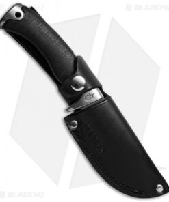 Gerber’s iconic Gator line gets a boost with premium S30V steel. Semi mirror-polished blades and bolsters offer classic protection against corrosion and undeniable beauty. Its handle has been updated with a Gerber logo stamped steel blade guard and stylized Gator Grip rubber. This model has a full-tang drop point blade with gut hook and includes an alligator-embossed leather sheath.