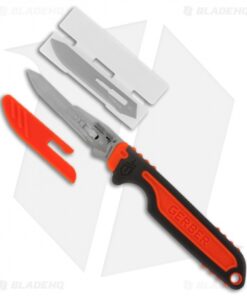 The Gerber Vital line of knives are geared toward the serious hunter and designed extra with safety features. The Vital Razor Fixed Blade has one of the safest Exchange-A-Blade options available. The handle is safety orange and has a rubber overmold and deep index finger groove for solid, secure grip in any environment. The Vital Razor comes with six replacement blades and a #60 scalpel.