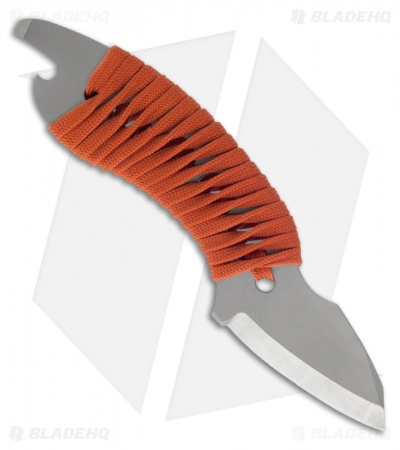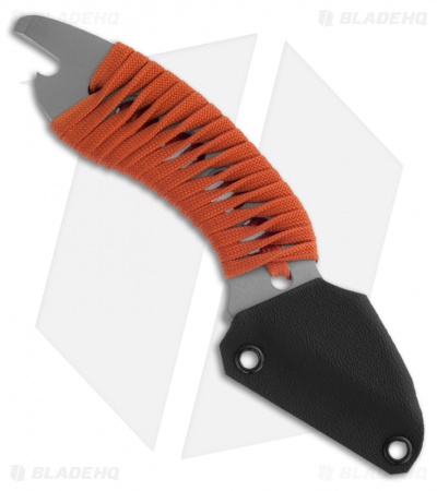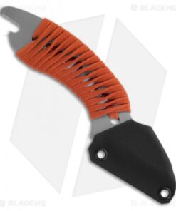 The Otterchizell fixed blade from Gray Precision features titanium construction with an orange paracord wrapped handle. The chisel ground 6Al4V Titanium blade has a carbide edge and swedge spine tip. The paracord enables a firm grasp and a thumb notch over the blade allows great control of this tool. The bottom of the handle has a bottle opener and pry bar tip. Includes Kydex sheath.