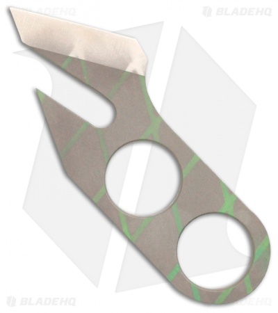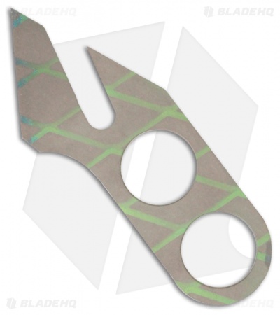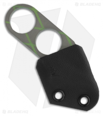 Ti Rhino Tool from Gray Precision is a knife and bottle opener. Bead blast and patterned toxic green anodized titanium construction. Includes Kydex sheath for neck carry.