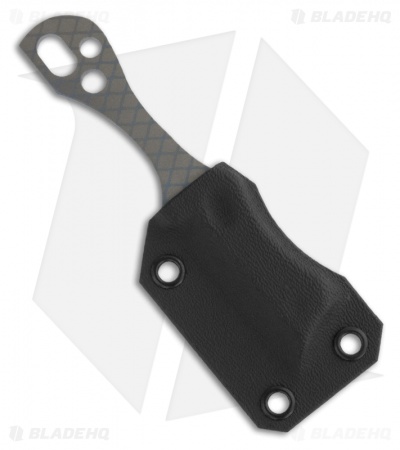 The Snork from Gray Precision is a 6A14V titanium neck knife with a bead blast finish and patterned blue anodized. The blade sports a chisel ground edge. Includes Kydex sheath for neck carry.