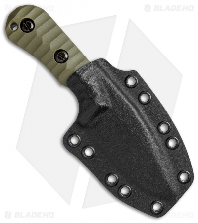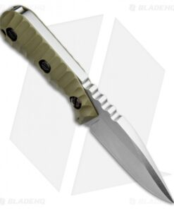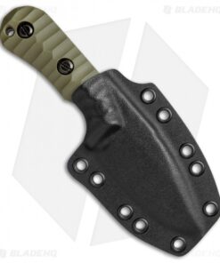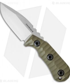 This custom fixed blade from Groniger Knives is a beast of knife that remains compact enough for comfortable everyday carry. Full tang construction, with a quarter inch thick blade provides a solid platform for any utility cutting chore. A custom, handmade build ensures the highest level of quality for all Groniger knives. This model is outfitted with carved OD green G-10 scales and a stonewashed CPM S30V blade in a drop point style.