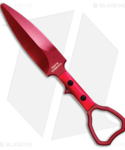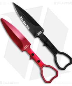 This combo pack also includes a dull red trainer knife so you can hone your skills safely. The trainer knife is made from 420 stainless steel with a Teflon coating and anodized aluminum handle scales.