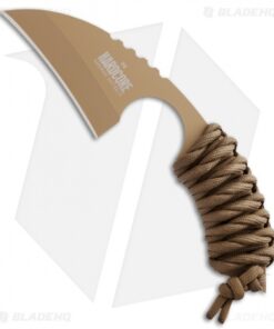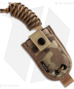 The LFK01-TPK knife has a coyote tan coated blade, and paracord handle. Khaki/Camo nylon sheath.