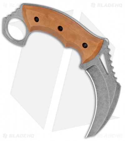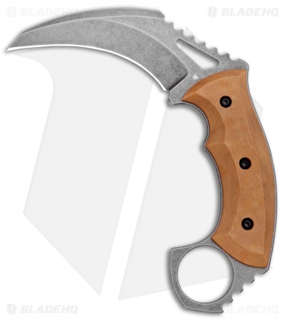 HavocWorks Custom KAOS Karambit Brown Richlite (3.25″ Acid Washed)