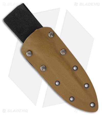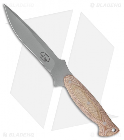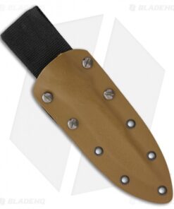 The full tang 154CM stainless steel blade with bead blast finish is an exceptional piercing tool with a strong tip and hollow ground cutting edge. Rounded tan micarta handles provide an excellent grip. Integrated dual fingerguards are unobtrusive while providing the needed safety in close quarters combat. Includes tan kydex sheath for easy carry in the field.
