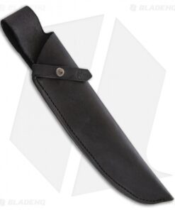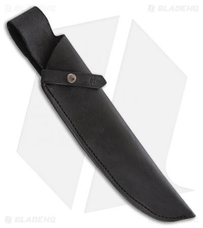 - Black leather sheath with a snap closure for secure belt carry.