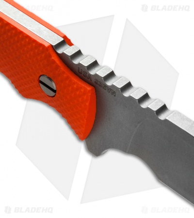 This model has an orange G-10 handle.