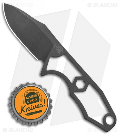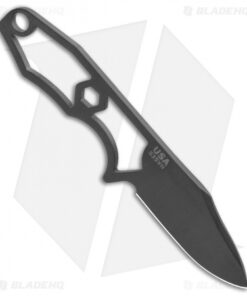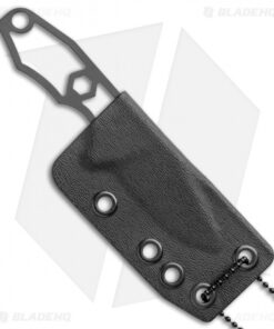 Rick Hinderer’s LP-1 is a lightweight neck knife for concealed carry and EDC chores. This one has a black DLC finished drop point blade. Three-finger grip with deep index groove keeps the knife secure in hand. Includes a Kydex sheath with a ball chain and 1″ & 1/2″ spaced attachment points for belt carry systems.